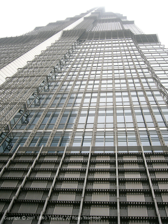 上海浦東新区に位置する超高層ビル(高さ420.5m、88階)。霧の濃い朝だった。最上階の展望台でも撮影した。グランドハイアットホテルも入っている。